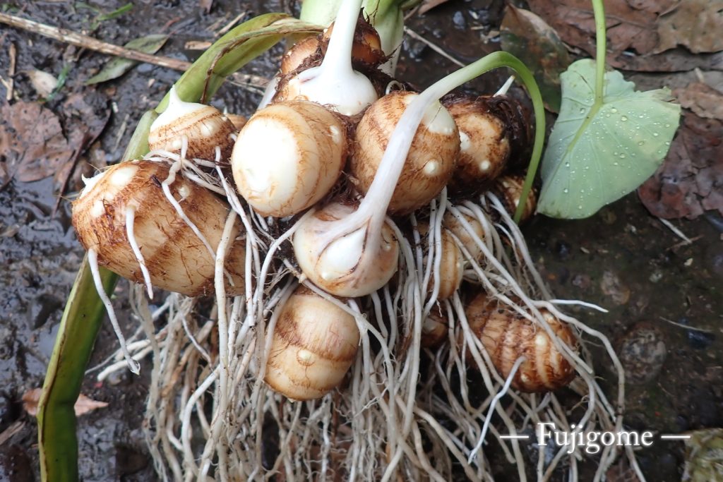 サトイモは乾燥が苦手ですが、覚えておいででしょうか? あの夏の酷暑と少雨を……。その影響を大きく受け、生長がやや弱い株も見られました。